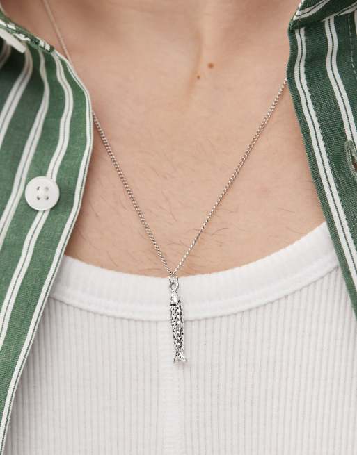 Faded Future - Sølvfarvet halskæde med panserkæde og fiskevedhæng
