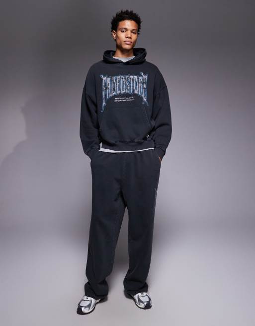 Faded Store - Blackletter - Vasket sort sæt med hættetrøje og joggingbukser