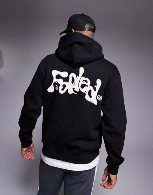 Faded Store - Sort hættetrøje med kontrasterende, flydende logo på ryggen