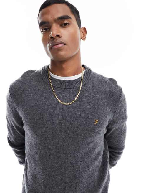 Farah - Birchall - Mørkegrå striktrøje i lammeuld
