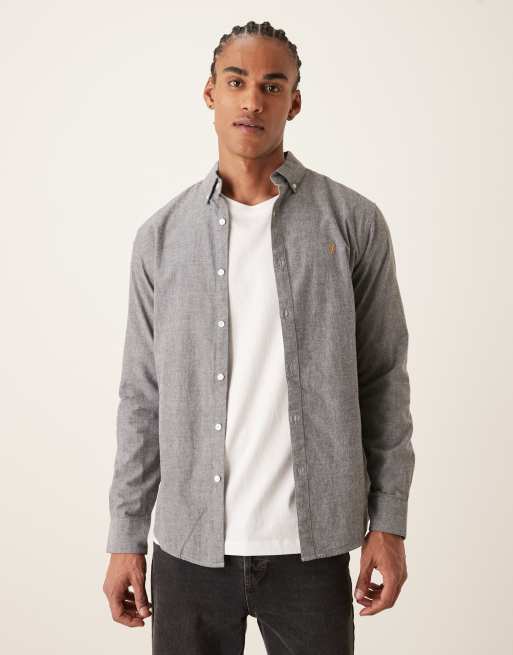 Farah - Steen - Grå casual skjorte med lange ærmer og logo