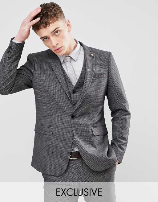 Skinny hundetandsmønstret jakkesætsjakke i grå fra Farah Eksklusiv på ASOS
