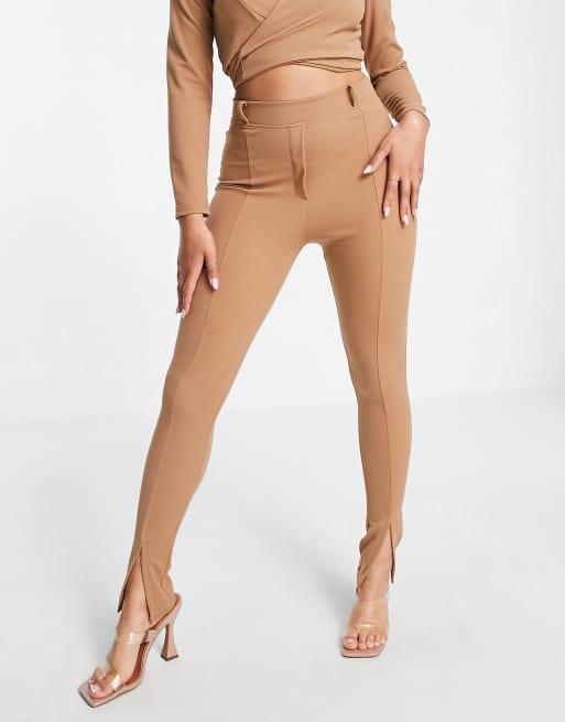 Femme Luxe - Gyldenbrune brukser med slids foran i jersey - Del af sæt