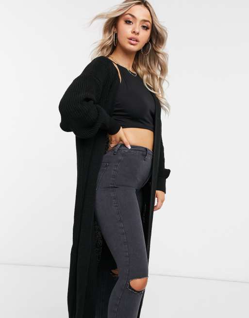 Femme Luxe - Strikket longline-cardigan i sort