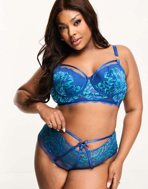 Figleaves Curve - Amore - Blå polstret balconette-BH i blonder med fiskenetdetalje