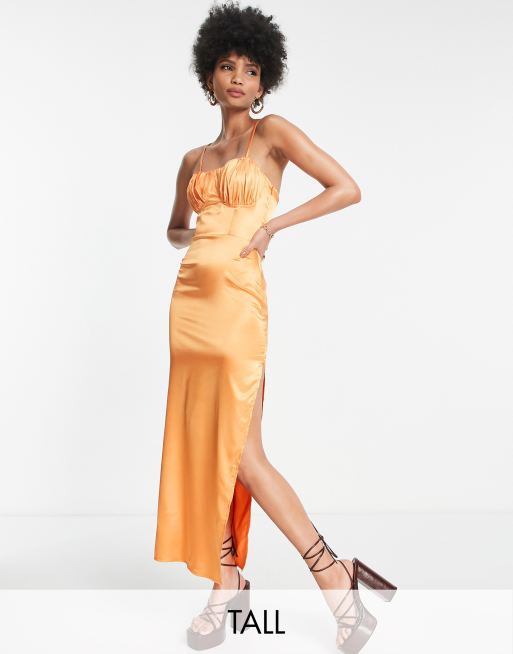 Flæse London Tall - Midikjole med rynkede skåle i orange satin