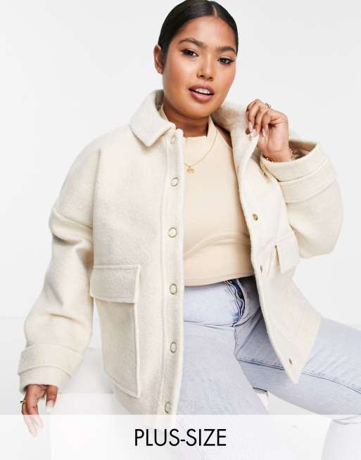 Forever New Curve - Cremehvid frakke med oversized lommer i imiteret lammeskind