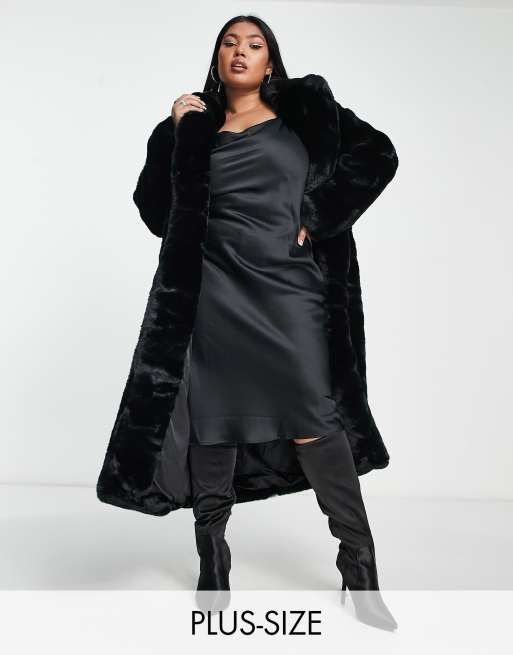 Forever New - Maxifrakke i sort imiteret pels