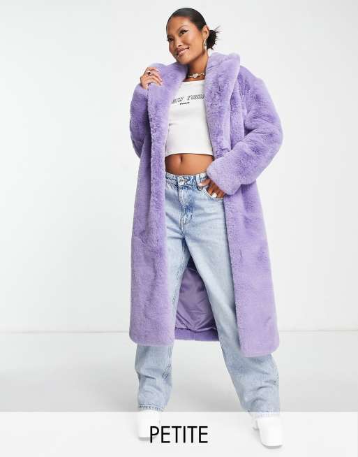 Forever New Petite - Sort, blød midifrakke i lilla, imiteret pels