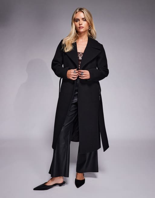 Forever New Petite - Sort og elegant frakke med slå-om-design