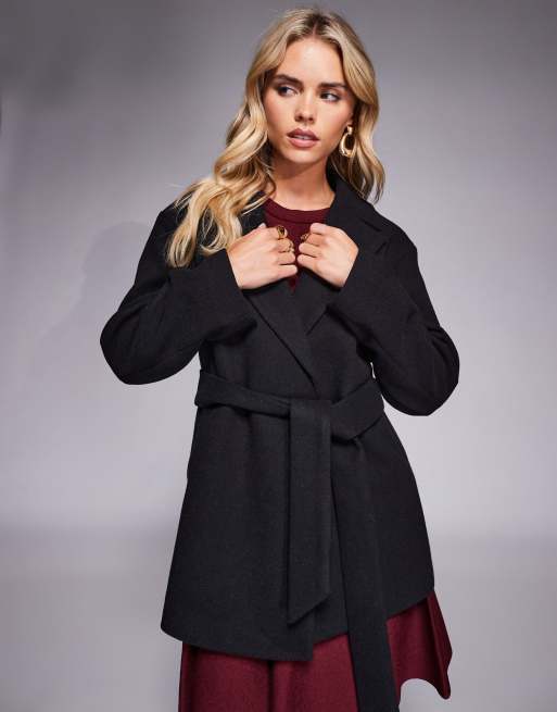 Forever New Petite - Sort og formel frakke med slå-om-design