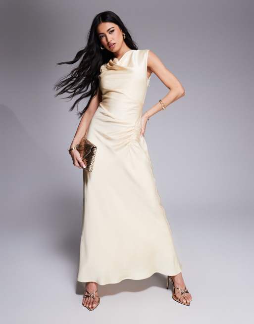 - Stof i satinstil: skinnende, draperet og silkeblødt