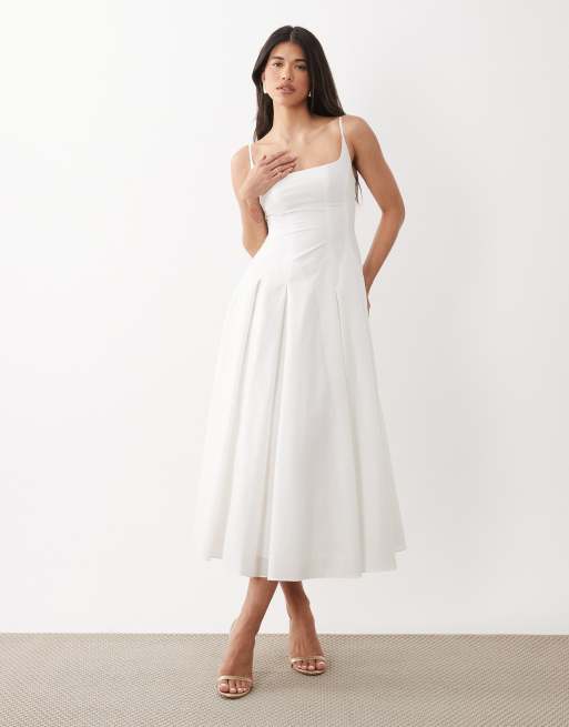 Forever New - Hvid skater-maxikjole med cami-stropper og kileskørt