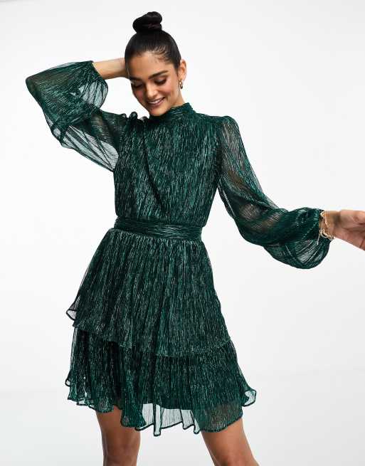 Forever New - Lagdelt og plisseret minikjole i metallisk smaragdgrøn