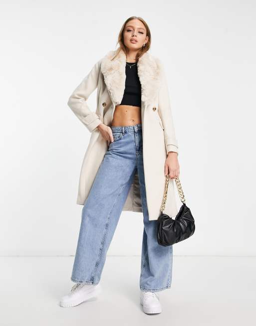 Forever New - Lys, beige longline-midifrakke i imiteret pels