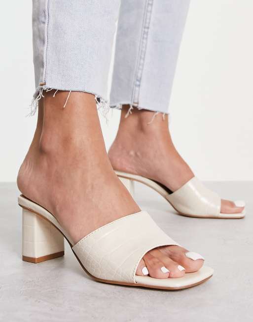 Forever New - Råhvide mules med blokhæl og krokodillelook