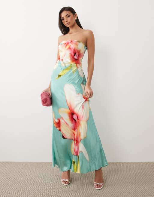 Forever New - Turkis bandeau-maxikjole med oversized blomsterprint i satin