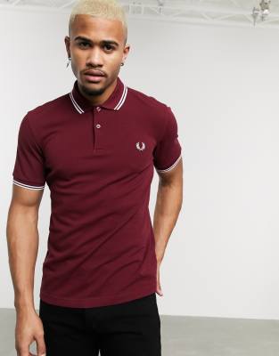 Burgunderfarvet poloskjorte med dobbeltfarvet kant fra Fred Perry
