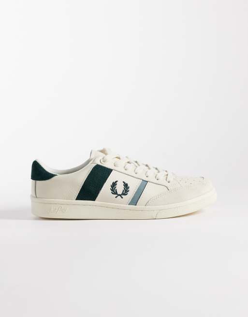 Fred Perry - B725 - Ecrufarvede sneakers i ruskindslæder med striber og logo