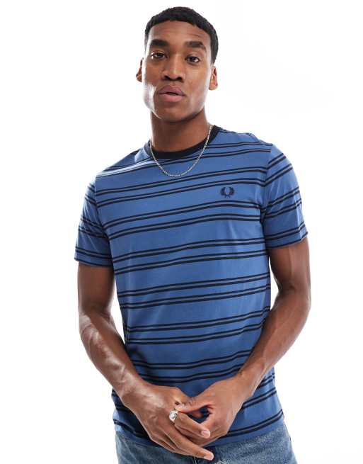 Fred Perry - Blå T-shirt med sorte og horisontale striber