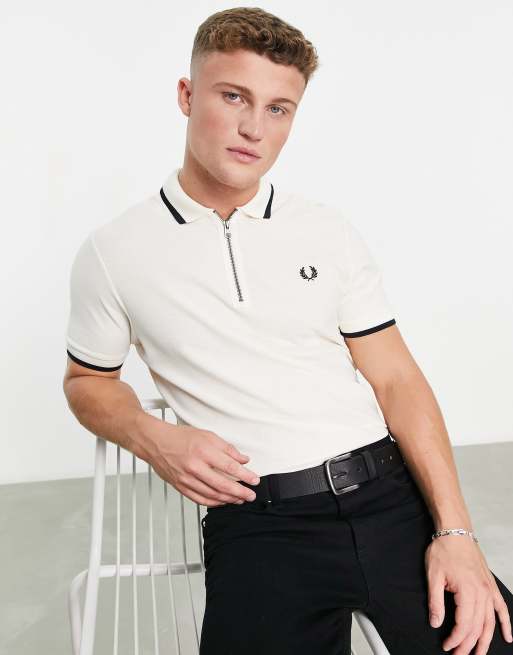 Fred Perry - Cremehvid poloskjorte med lynlås i halv længde