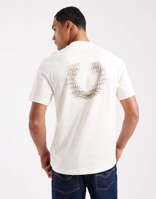 Fred Perry - Ecru T-shirt med grafisk lysboks-logoprint på ryggen