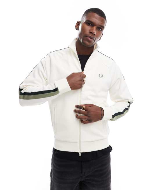 Fred Perry - Ecrufarvet træningsjakke med sidestriber