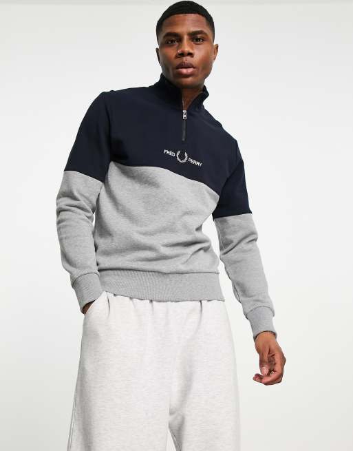 Fred Perry - Grå sweatshirt med farveblok-design og halv lynlås