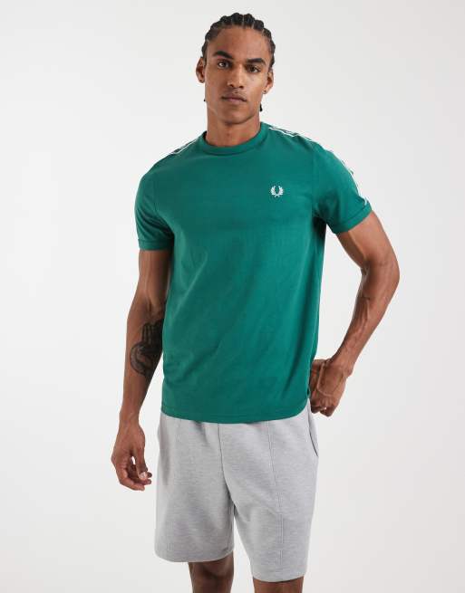 Fred Perry - Grøn T-shirt med ringer-detaljer og bånd i kontrast