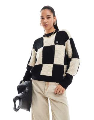 Fred Perry - Oversized striktrøje i sorte og offwhite skaktern