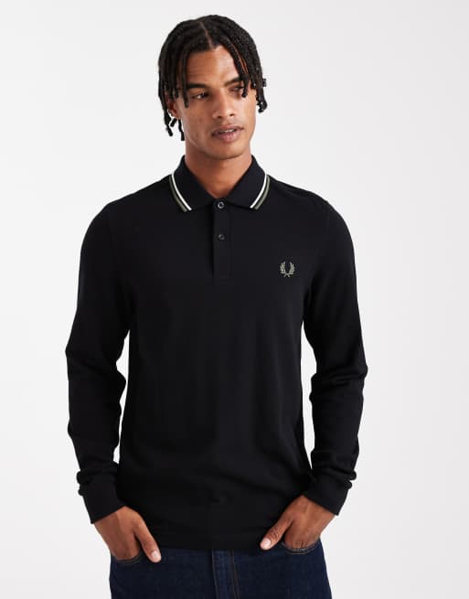 Fred Perry - Sort langærmet poloskjorte med kantstriber