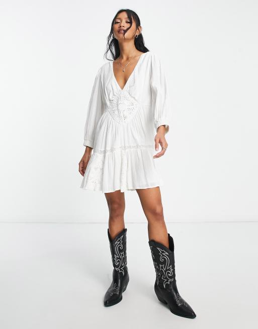 Free People - Hvid smock-kjole med broderie anglaise-detalje