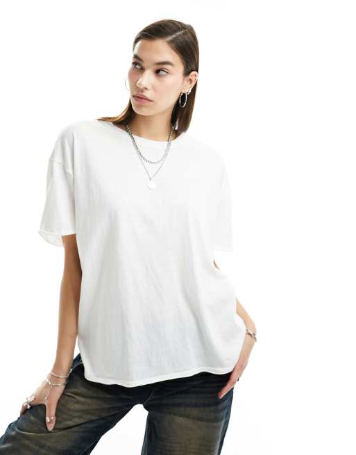 Free People - Klassisk, afslappet T-shirt med oprullede ærmer i hvid
