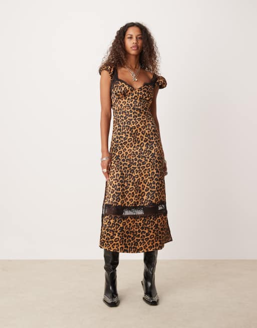 Free People - Midikjole med blondekanter og leopardprint