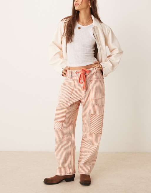 Free People - Moxie - Jeans med bindetalje og røde striber
