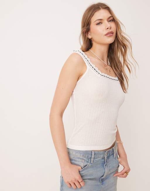 Free People - Only You - Elfenbenshvid tanktop med bånddetalje