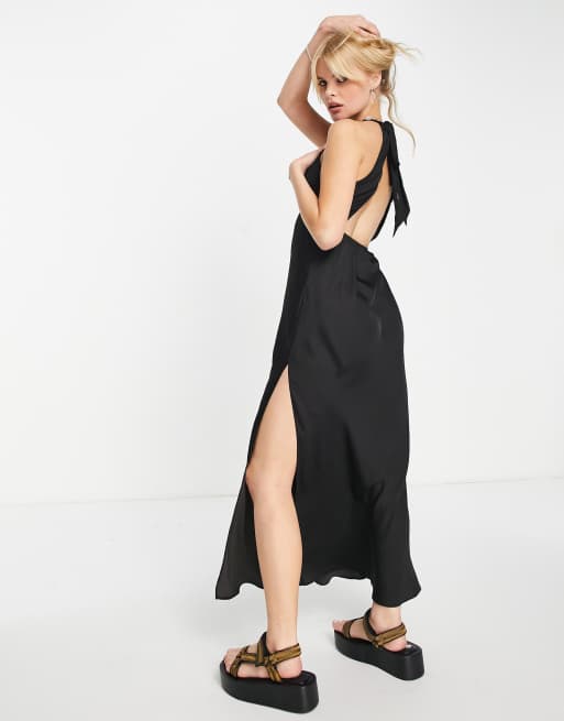 Free People - Sort cami-maxikjole i satin med slids-detalje