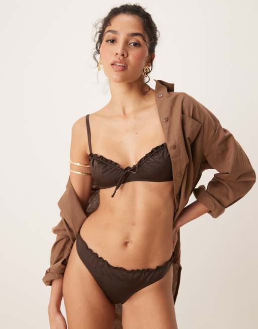 Free Society - Mørkebrun rynket bikinitop