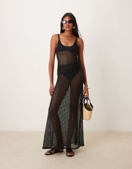 Free Society - Sort-strikket strandmaxikjole