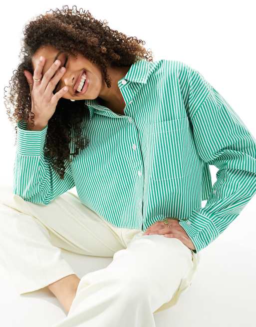 French Connection - Alissa - Cropped skjorte med grønne og cremehvide striber
