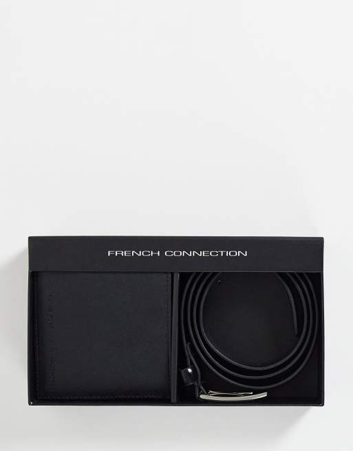 French Connection - Gavesæt med sort pung med logo og læderbælte