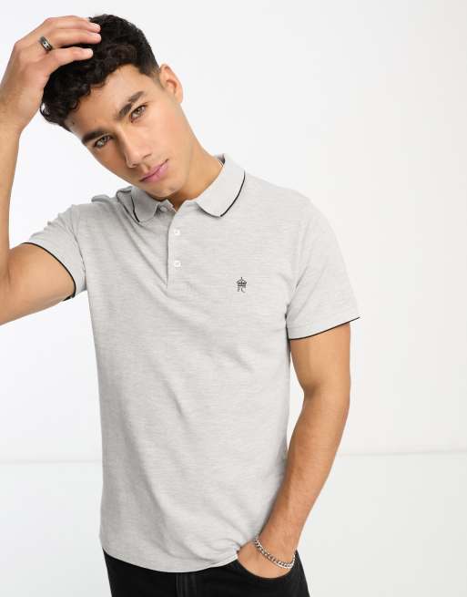 French Connection - Lysegrå polo med enkelt kantstribe