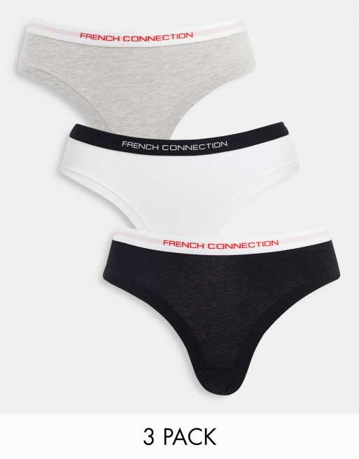 French Connection - Pakke med 3 par cheeky-trusser i sort og hvid og grå