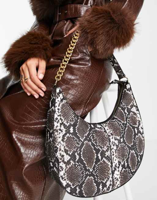 French Connection - Sort skuldertaske med slangeprint