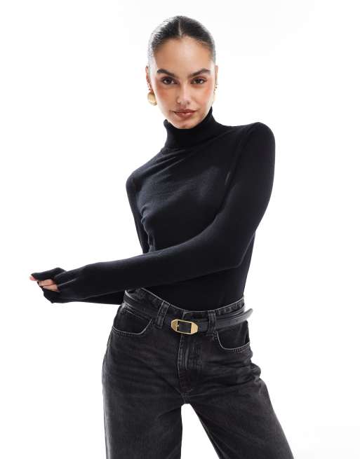 French Connection - Superblød sort rullekravetrøje i let strik