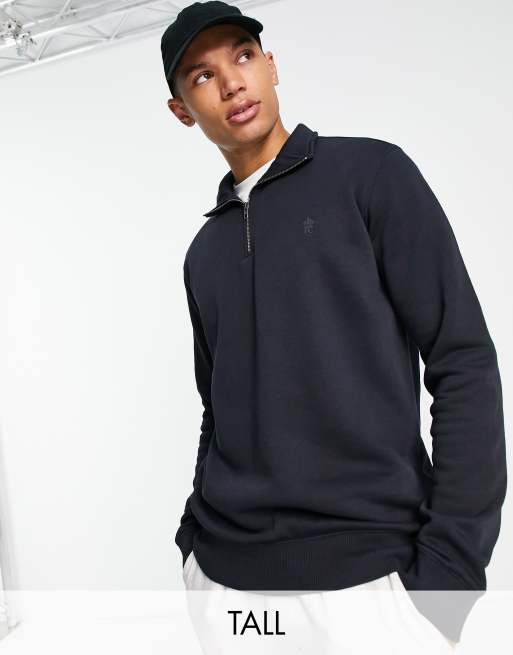 French Connection Tall - Marineblå sweatshirt med kort lynlås
