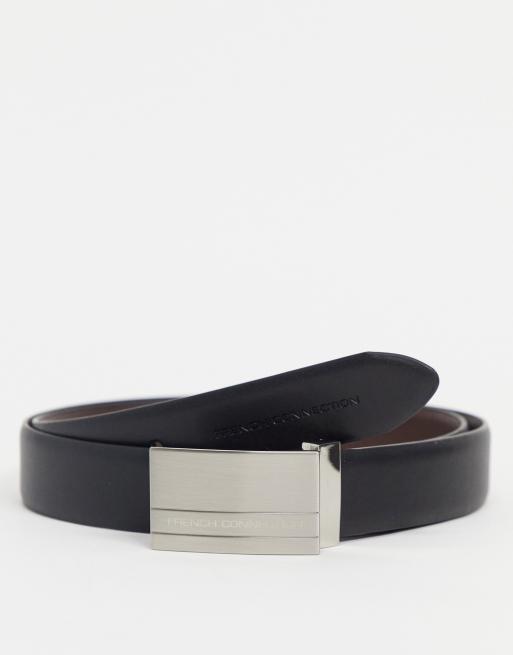 French Connection - Vendbart bælte med retankulært spænde i sort og brun