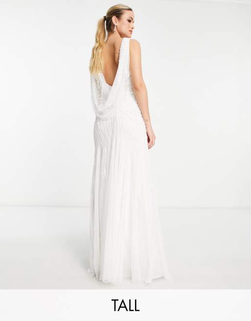Frock And Frill Tall - Udsmykket maxikjole med dyb vandfaldsudskæring bagpå i elfenben