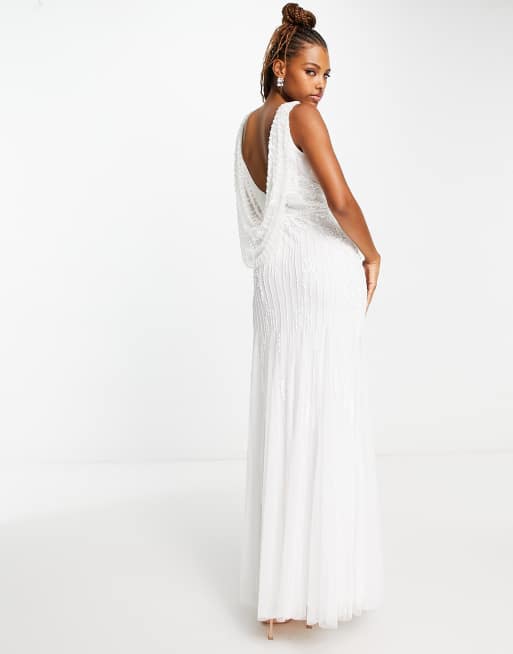 Frock And Frill - Udsmykket maxikjole med dyb vandfaldsudskæring bagpå i elfenben