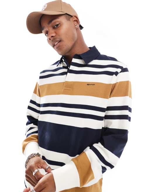 GANT - 75th Anniversary Capsule - Marineblå sweatshirt i rugbystil med striber og logo